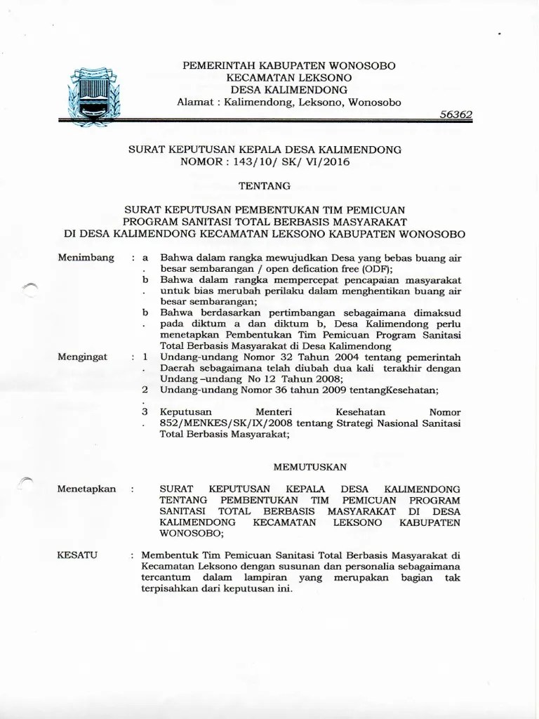 Contoh Sk Pokja Sanitasi Doc : Surat Edaran Nomor 02 Se Dc 2018 Tentang Pedoman Teknis Pelaksanaan Kegiatan Padat Karya Direktorat Jenderal Cipta Karya A Um : Bersama sama dengan tim pembina dan lembaga.. Keputusan kepala desa balingasal nomor 791/3.1/kep/2020 tentang penunjukkan tim pokja penyusun anggaran . Pada akhir tahun 2019, berdasarkan himbauan dari pusat, pokja pkp dan pokja ampl kabupaten purworejo digabung menjadi 1, yaitu pokja perumahan . Pokja ampl/ppas provinsi dibentuk berdasarkan sk gubernur, diketuai. Membentuk kelompok kerja (pokja) pos pelayanan terpadu (posyandu). Contoh surat keputusan lurah terkait pokja.
