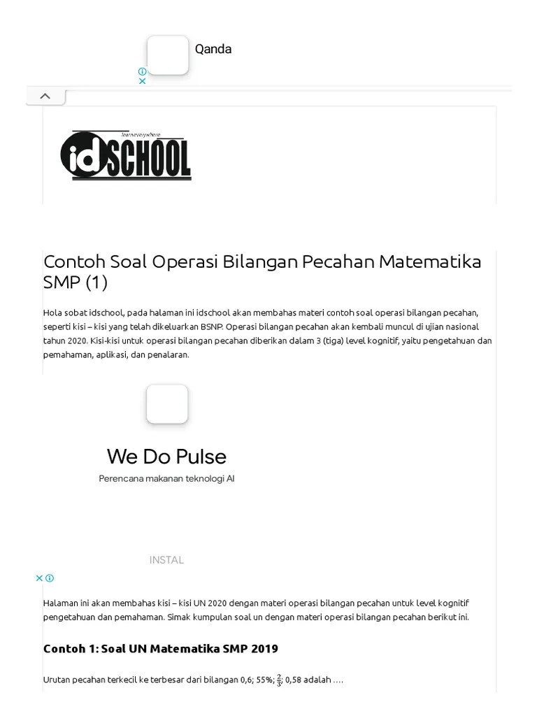 Soal Operasi Bilangan Pecahan Un Smp / Contoh Soal Dan Pembahasan Tentang Perkalian Dan Pembagian Pecahan Sd Ajar Hitung : 15.08.2020 · download rpp mtk 1 lembar kelas 4 semester 1, contoh rpp satu lembar matematika kelas iv sd semester ganjil revisi 2020, rpp k13 mtk 1 halaman